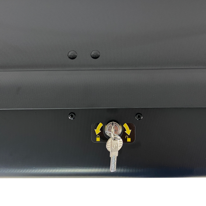 Висок клас кутия за багажник с двустранно и подисгурено заключване, като практически е невъзможно ключът да се махне без да е заключен боксът.