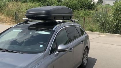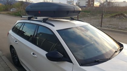 2 напречни алуминиеви греди за багажник, механизъм за затягане с гумени уплътнители, гумени уплътнители и за долната страна на алуминиевият профил, заключващ механизъм с 2 бр. ключове
