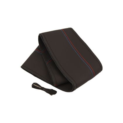 Калъф за волан от естествена кожа за шиене, който придава спортен и стилен вид на волана и се доближава максимално до оригиналния стил. Не се плъзга по време на шофиране и придава приятно усещане на ръцете. Комплекта включва: калъф за волан-естестветна кожа, здрав конец и игла. Размер: 38cm Цвят: Черен Материал: Естествена кожа Произход: Китай