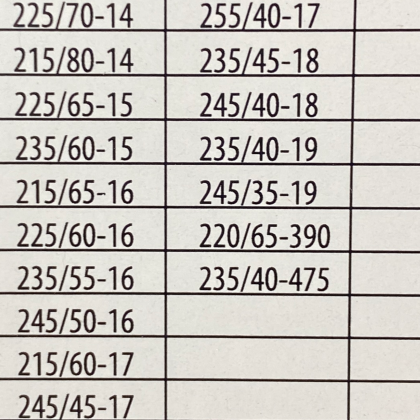 – Вижте размерите на гумите за които са подходящи в изображенията